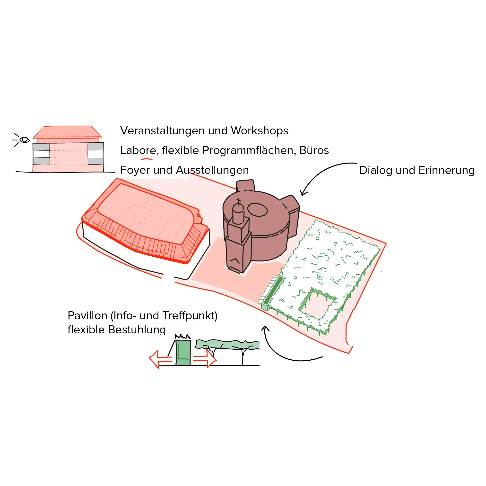 Der Pavillon als räumliche Klammer, nahbarer Ort und Multiplikator